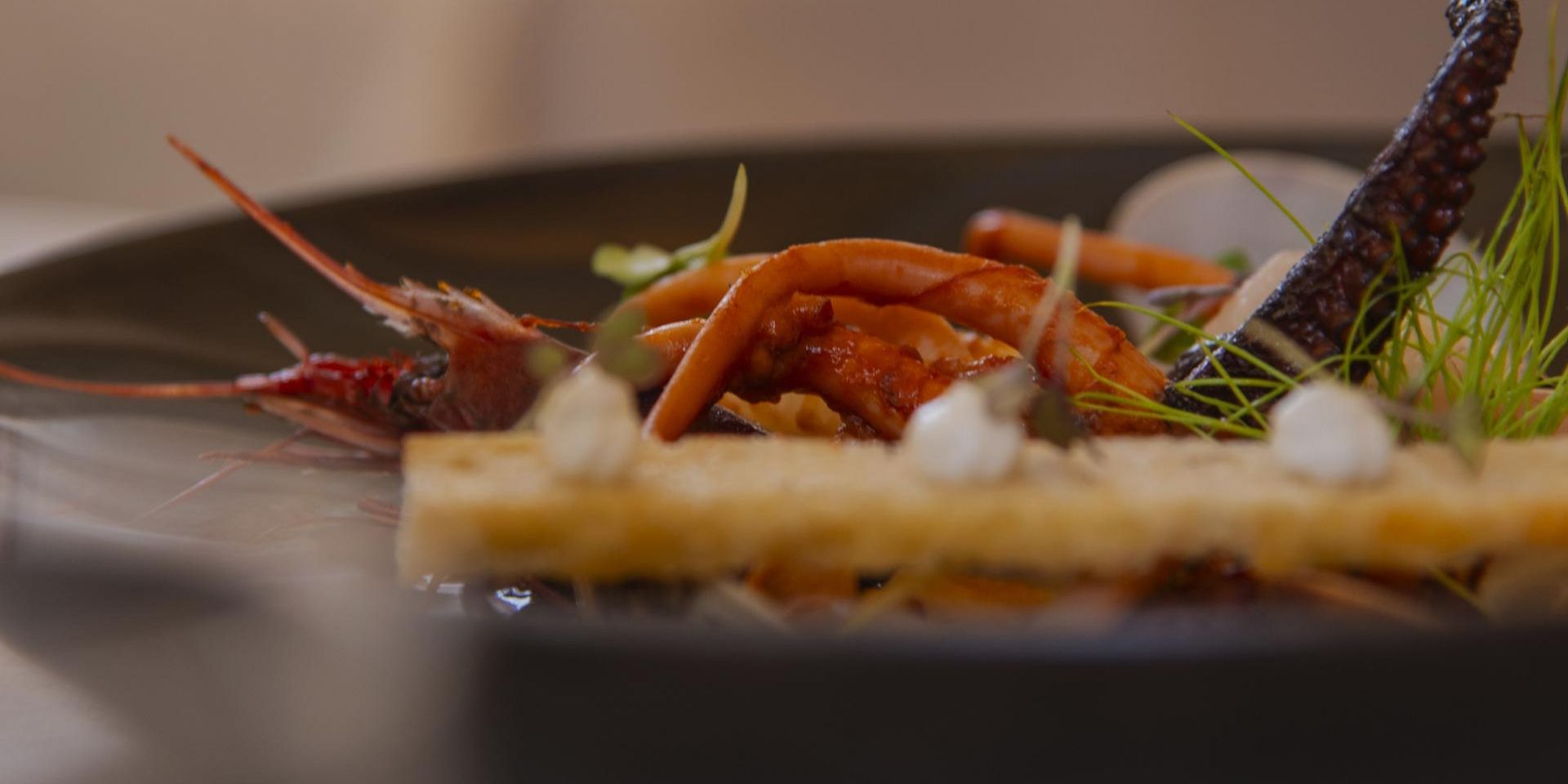 with tomato and strawberry gazpacho, stracciatella mousse and chopped pistachios
